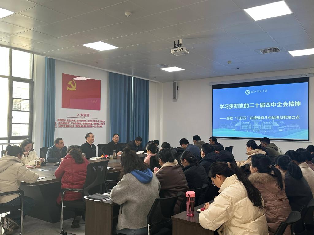 2025年12月18日下午,校党委副书记周明华以“学习贯彻党的二十届四中全会精神——启程‘十五五’在连续奋斗中找准汉师发力点”为主题,为学院教师讲授了一堂内容丰富、思想深刻的专题党课。党课旨在深入领会党的二十届四中全会精神,统一思想认识,凝聚发展合力,为学校在“十五五”时期实现高质量发展指明方向。