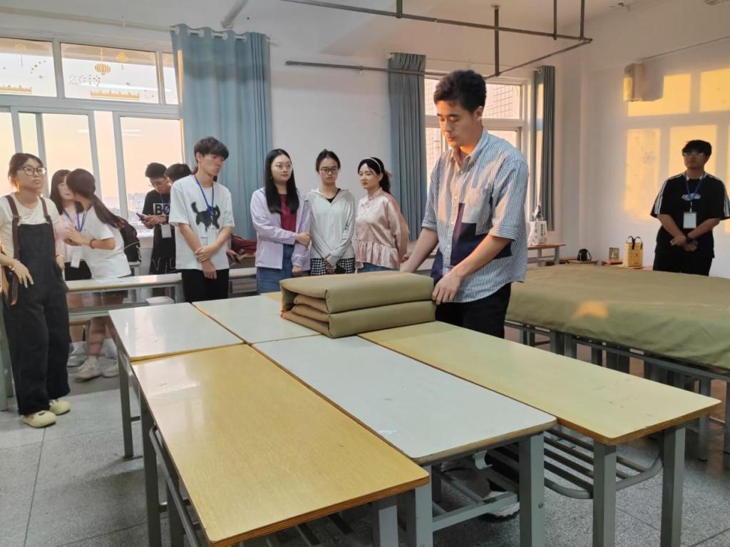 为进一步推动学风建设、增强宿舍文明意识,提高学生整理内务水平和动手能力,积极响应校院两级“十星级文明寝室“建设,5月14日晚,伟德体育官网在崇文楼B808教室举办“叠被子大赛”。本次活动特别邀请了应化2202班退伍士兵马泓坤作为比赛的评委。