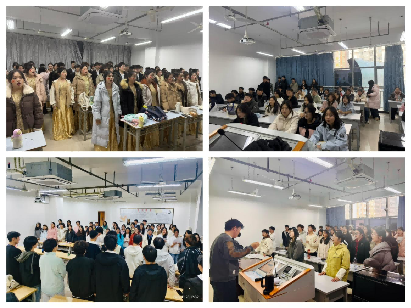 备赛之路,是从生疏到默契的打磨之旅。“起初音准参差不齐,如今一个眼神便能精准契合节奏。”这是参赛同学们的共同感受。为追求最佳演出效果,学院合唱团利用午休、晚间等课余时间,开展集中训练。指挥老师带领同学们逐字逐句校准音准、把控节奏、体悟情感,在日复一日的重复练习中雕琢细节、追求和谐。值班同学恪尽职守维护训练秩序,学院老师们全程关怀指导、提供坚实保障,让训练工作高效推进。不少同学表示,这段经历不仅提升了歌唱技艺,更学会了倾听他人、主动配合,在为共同目标拼搏的过程中,结识了一群志同道合的伙伴。