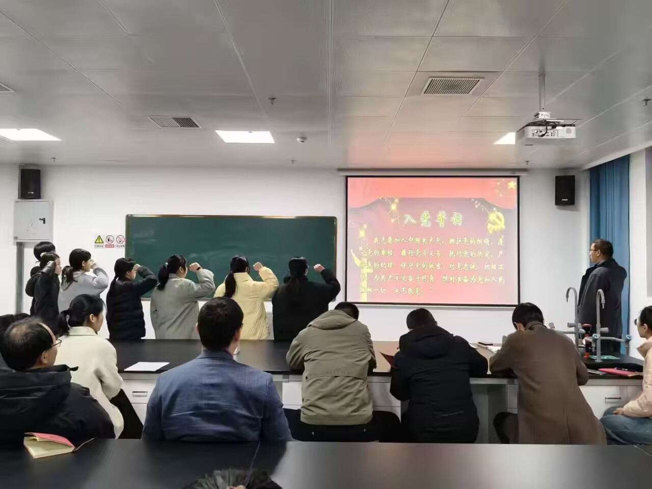 12月18日下午,伟德体育官网,BV伟德官方网站在明理楼A501教室庄重举行预备党员宣誓仪式,8名新发展的预备党员在党旗下庄严宣誓,正式开启他们为党和人民事业奋斗的新征程,学院党委书记成传明以及学生党支部师生党员共同参与此次活动。