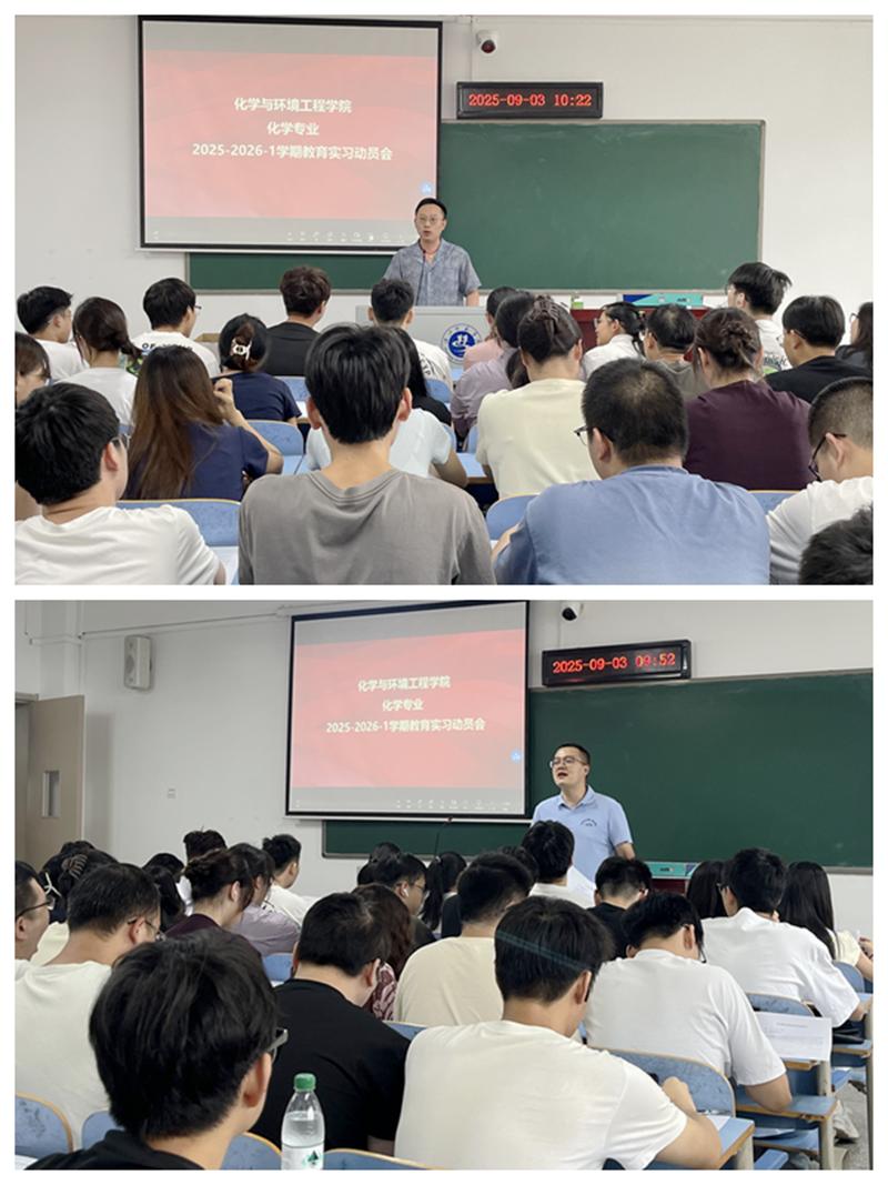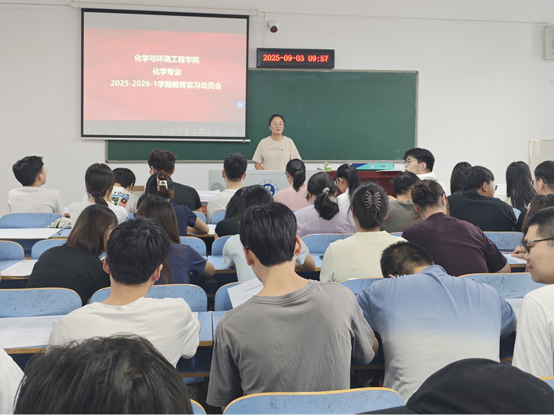 杨赟结合化学学科教学特点,叮嘱同学们要将理论知识转化为教学实践,在课堂中打磨专业能力;王吉利则从安全与心态两方面提醒,鼓励大家以谦逊态度向指导教师学习,展现师范生良好风貌。此次动员大会为实习生搭建了“目标-路径-保障”的清晰框架,不仅明确了实习方向,更激发了学生投身教育实践的热情,为后续实习工作高质量推进奠定坚实基础。